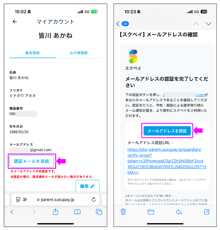 ※メールが届かない場合も、スクペイから決済のお手続きは可能です。